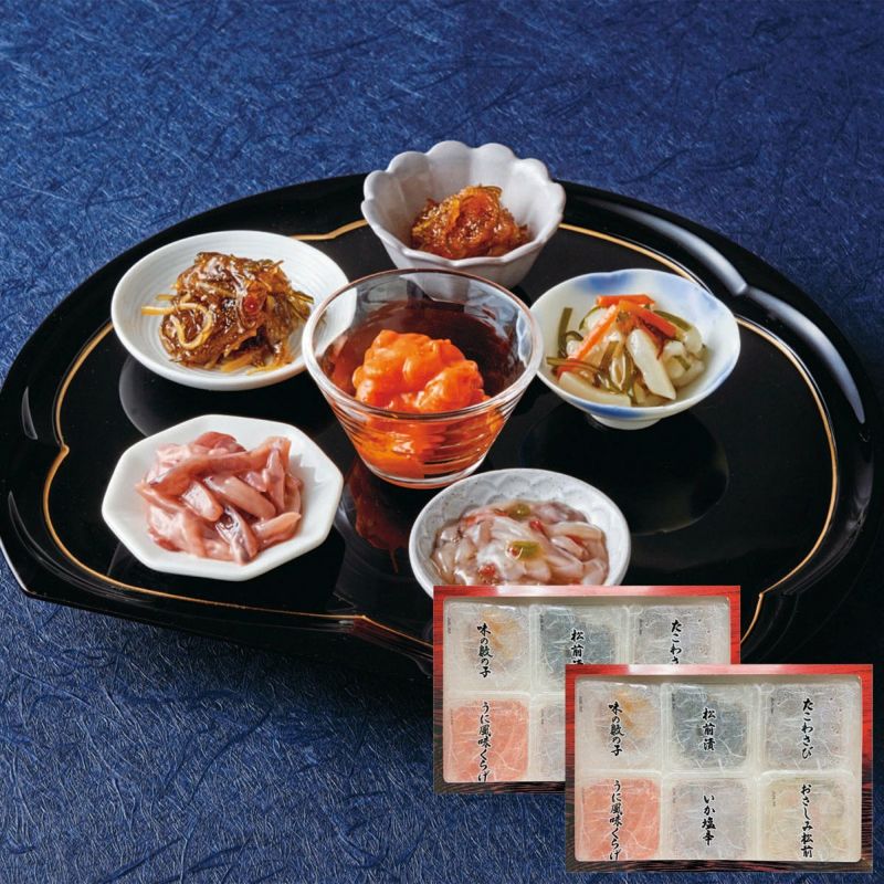 いか塩辛・松前漬・おさしみ松前・うに風味くらげ・味の数の子・たこわさび各50g×各2