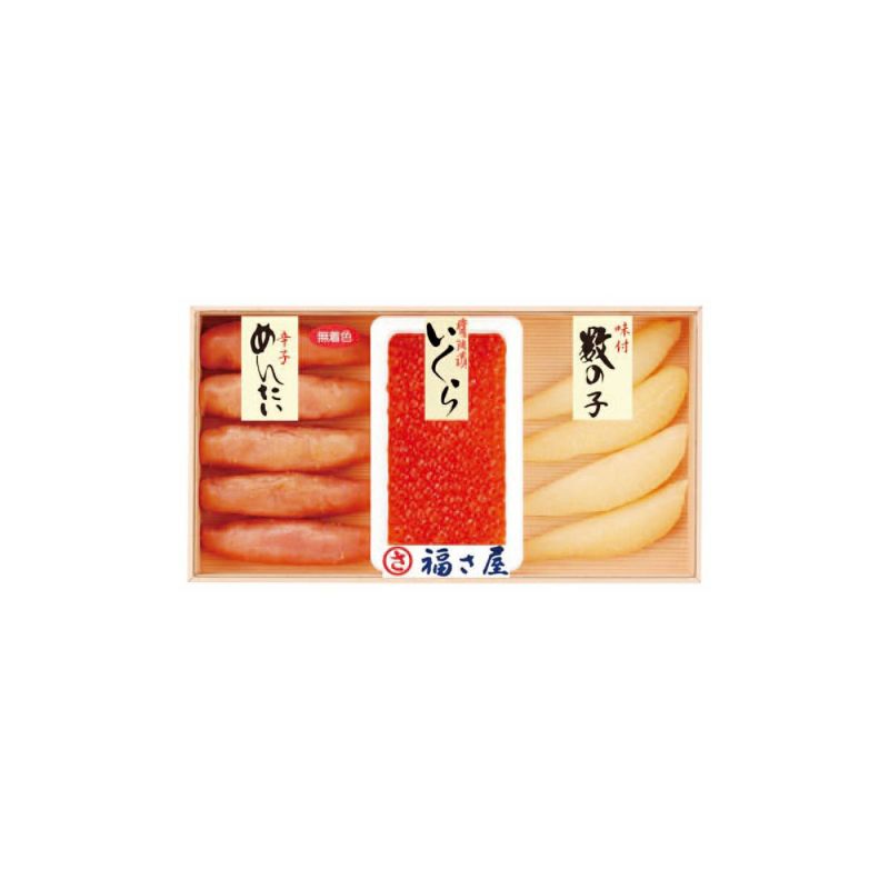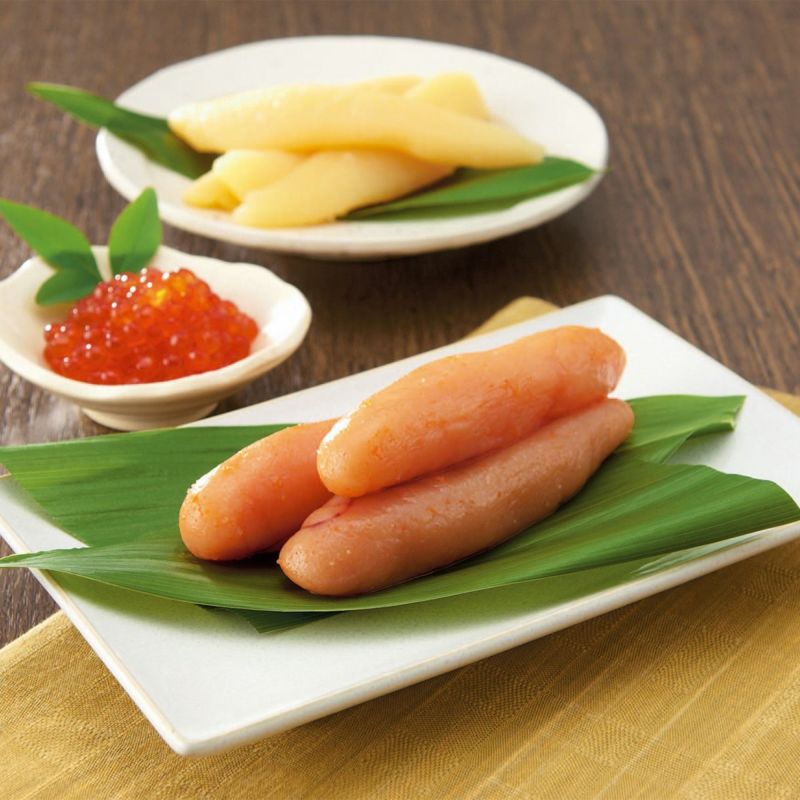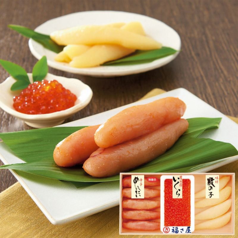 無着色辛子めんたいこ160g(ロシア又はアメリカ産)、味付数の子80g(アメリカ又はカナダ産)、醤油いくら60g(北海道産)(全て福岡県にて加工)