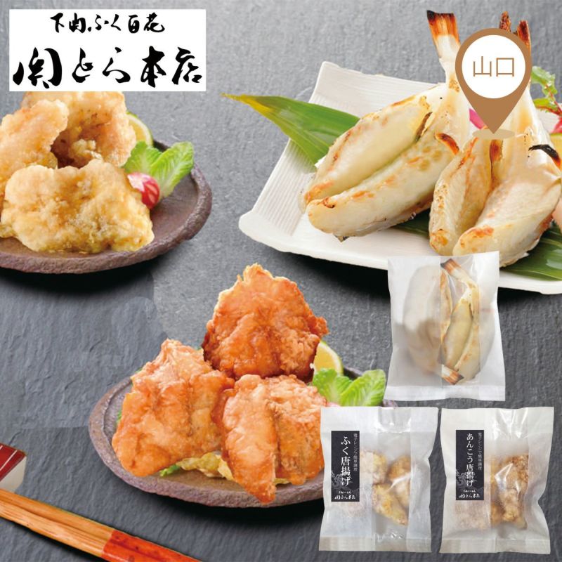あんこう唐揚げ100g(山口県産)、ふぐ唐揚げ・ふぐ一夜干し各80g(福岡県又は長崎県産)(山口県にて加工)