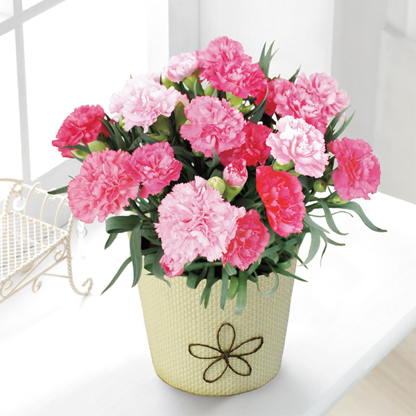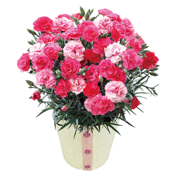 様々なピンク色が楽しめるカーネーション。濃いピンクから淡いピンク色へと移ろう花色のグラデーションが美しい品種です。